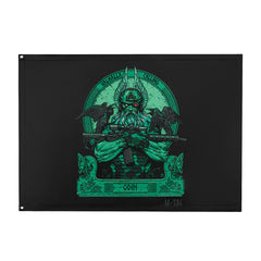 The difference between the banner and the previously released ODIN 630x900 flag is the change in the position of the print (from horizontal to vertical) and the addition of 2 grommets on the right side. The print shows a determined Odin who has traded his traditional spear (Gungnir) for an AR-15 rifle. Dressed in modern combat gear and a PNB helmet, he is ready to lead his warriors into the final battle. On Odin's shoulders sit his faithful companions - the ravens Hugin (thoughts) and Munin (memory), who fly around the 9 worlds every day and report back to the supreme god about everything that has taken place.