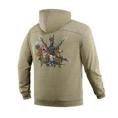 The front of the hoodie features a shooting "team." It symbolizes the true power of friendship and support, which outweighs even the most powerful weapon. The fighters' grins indicate that they are extremely serious.On the back of the shirt, the same wild shooters are depicted, but now in the midst of battle. While not each of them handles their weapons in the same way, with the support of their reliable brothers, even the toughest challenges will turn into an adventure.