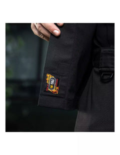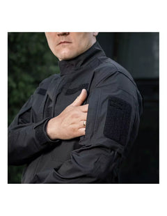 The Patrol Flex Uniform Jacket from M-Tac features a comfortable, slightly fitted design. The model is equipped with a collar fastened with Velcro and a central closure with a plastic "tractor" zipper covered by a Velcro strip. The chest has two hidden pockets with vertical Velcro closures for easy access to their contents, as well as horizontal Velcro panels for attaching personal identifiers and patches. Under the armpits, there are ventilation grommets. The sleeves feature one sewn-on pocket with a vertical zipper and a multicam Velcro panel, equipped with service compartments for attaching holders or similar equipment. The back has a reinforced yoke with a Velcro panel for an IR marker under the collar, and along the armpit area are expansion folds that allow for freedom of shoulder movement, even when wearing a bulletproof vest or Plate Carrier. The sleeves are equipped with sewn-on pockets with Velcro for attaching soft pads. The cuffs are adjustable with Velcro flaps.
