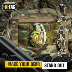 The new patch from the M-Tas brand is created for fans of military themes and will complement your equipment in an original way. The patch is made in the form of the American fragmentation hand grenade M67 utilized to supplement infantry actions in the field. The humorous and sarcastic Emoji is depicted on the grenade, which serves as an element of non-verbal communication and hints at the inevitable roasting of the enemy. The inscription Born to Kill in translation means "born to kill". This expression is part of military culture with a historical beginning since the Vietnam War, having a direct relationship with the American soldiers of that time. The patch is made of high-quality PVC (polyvinyl chloride) material using 3D technology, thanks to which it appears voluminous and the image is very realistic. Attaches to clothing or equipment with hook backing panel.
