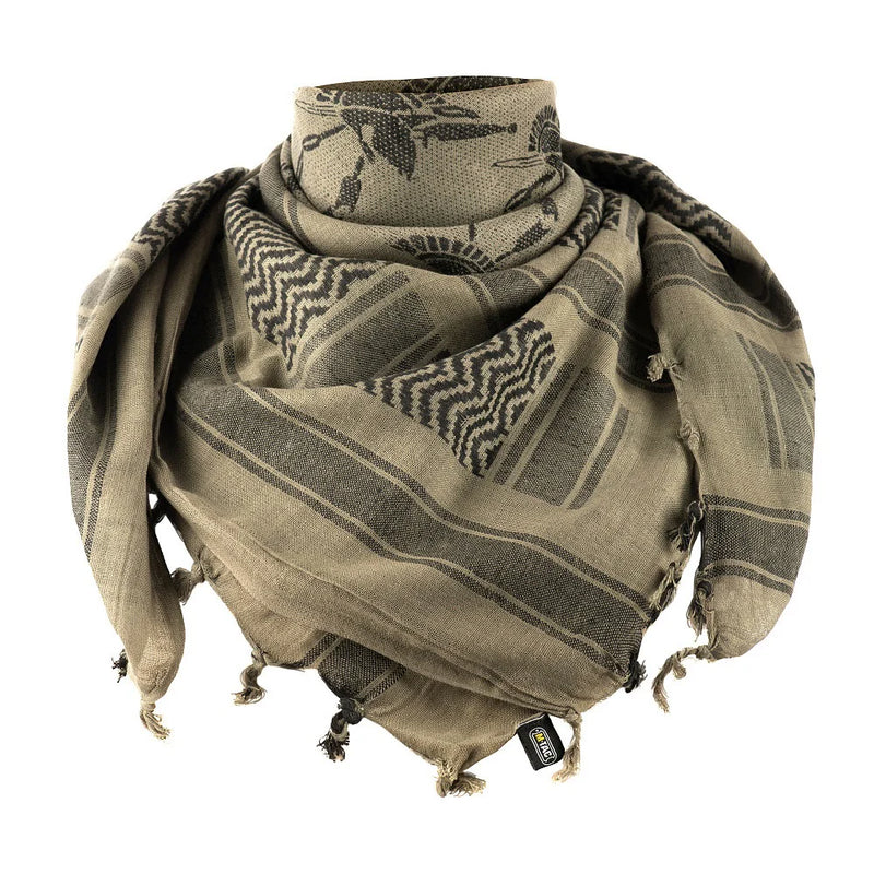 The M-Tac scarf shemag spartan with with spartan helmet sewing picture. He received the name "shemag" from the British. And it is most common in Europe and the United States. Although the real name is kufia (keffiyeh, shemagh, kaffiyah, keffiya, kaffiya, ghutra, hatta) - a men's headscarf, which appeared in Arab countries. It was primarily designed to protect the head and neck from the sun and sand, as well as to protect from the wind in cold weather.