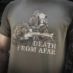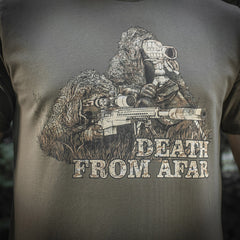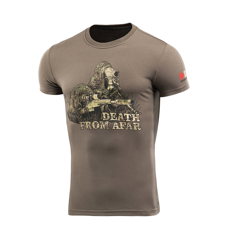 M-Tac presents the Sniper T-shirt that is dedicated to snipers. The image shows a sniper couple with the words "Death From Afar". The M-Tac T-shirt is made of 93% cotton with the remaining 7% of elastane. Due to this, the T-shirt can withstand more than a dozen laundries and doesn't lose its shape. A T-shirt is a must-have for any man's wardrobe. The application area of M-Tac T-shirts is wide, from everyday use to a military uniform or law enforcement agencies. T-shirts are most suitable for use with an active lifestyle: hunting, fishing, sport, tourism. Thin elastic and quality knitwear successfully emphasizes the relief of the muscles)) gives a complete feeling of comfort.