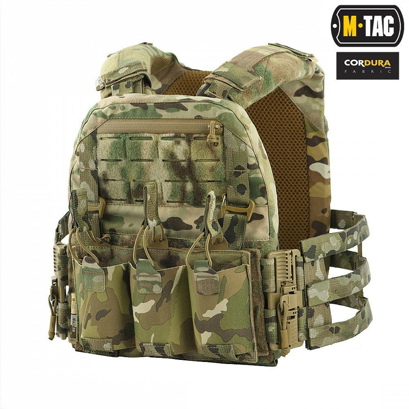 The M-Tac plate carrier Cuirass QRS marks an evolutionary stage in the development of the PLATE CARRIER line.From the Ukrainian brand M-Tac. New design with quick release system, modular pouch system on the fron of the plate carrier, a skeletonized camerbend combined with ultimately reliable materials, original CORDURA / NYLON, makes this plate carrier a worthy choice for modern tactical gear lovers.