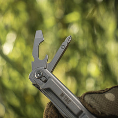 This product is equipped with five useful tools: a knife, scissors, a flat screwdriver, a Phillips screwdriver, and a bottle opener. All elements are tightly fixed in the open and closed position. Thanks to the ergonomic shape, the knife fits perfectly in the hand and does not slip during work.